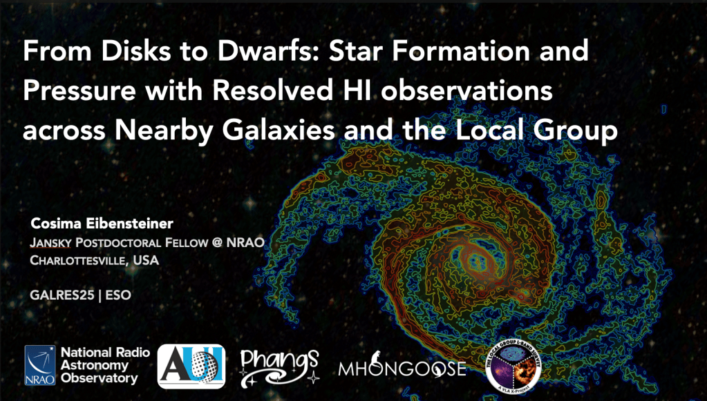 I was in Garching at ESO for the “Galactic ecosystems under the microscope: lessons from highly-resolved studies” workshop at the beginning of July. I was invited to give a talk about highly resolved HI observations and how I use them together with observations from ALMA and space telescopes for my research.