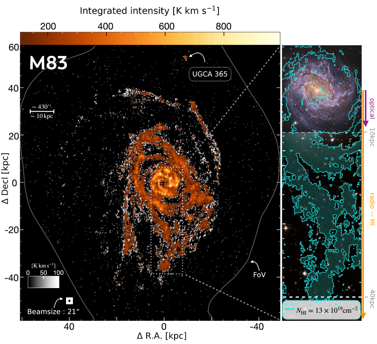 I really think maps of HI disks are one of the most impressive things I have seen regarding nearby galaxies, as they extend way beyond a galaxie’s optical radius! Studying HI and the kinematics of HI disks is essential for understanding how galaxies evolve and regulate star formation over cosmic time. The distribution and velocity structure of atomic gas provide critical insights into gas accretion, feedback processes, and the buildup of molecular gas reservoirs. By examining and modeling the HI disks, we can trace the flow of gas throughout the disk and assess how these processes shape star formation